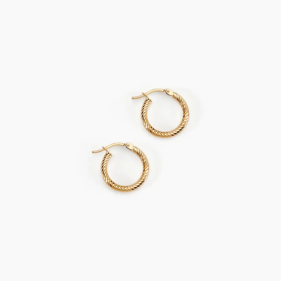 Créoles Or Jaune 375/1000 Fil Rond Effet Diamanté Largeur 2mm Diamètre 10mm