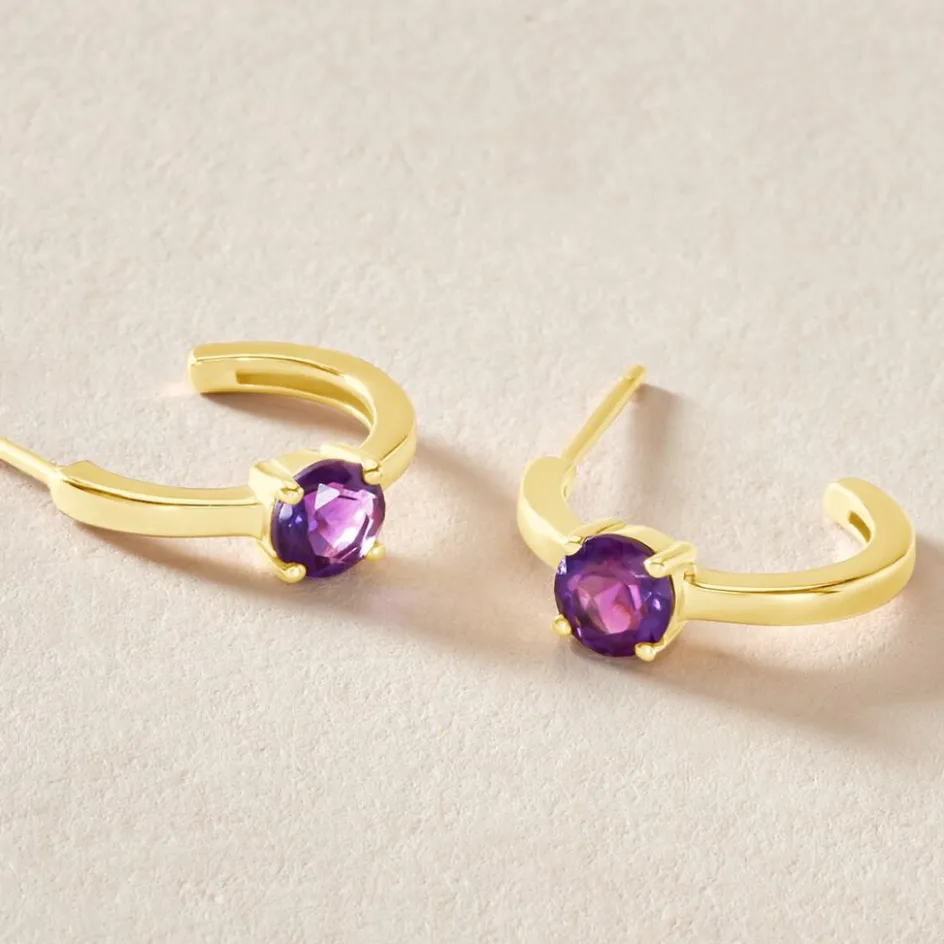 Demi Créoles Or Jaune 375/1000 Améthyste 4 Griffes