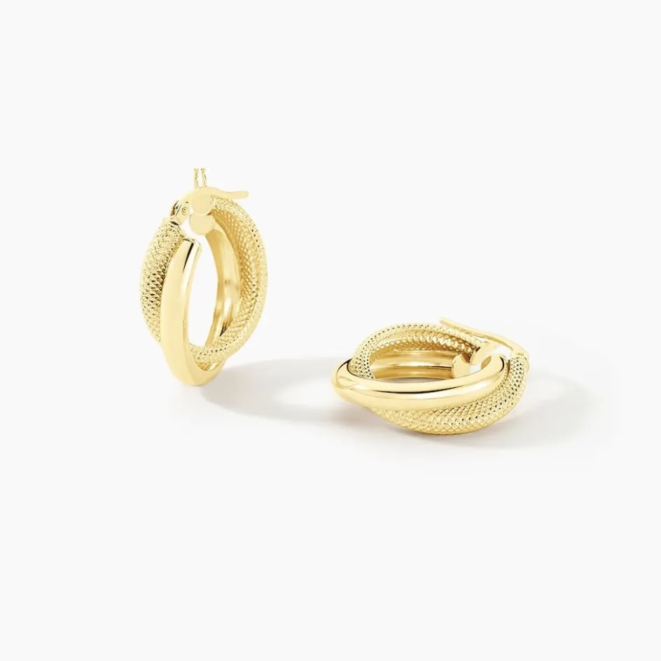 Créoles Or Jaune 375/1000 Croisées Fils Demi Jonc Et Rond Effet Martele Largeur 3mm Diamètre 15mm