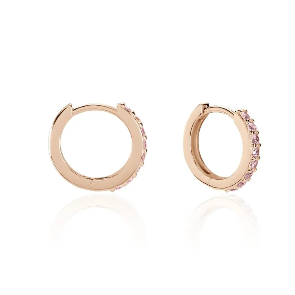 Créoles Argent Rose 925/1000 Oxydes De Zirconium Roses 15mm