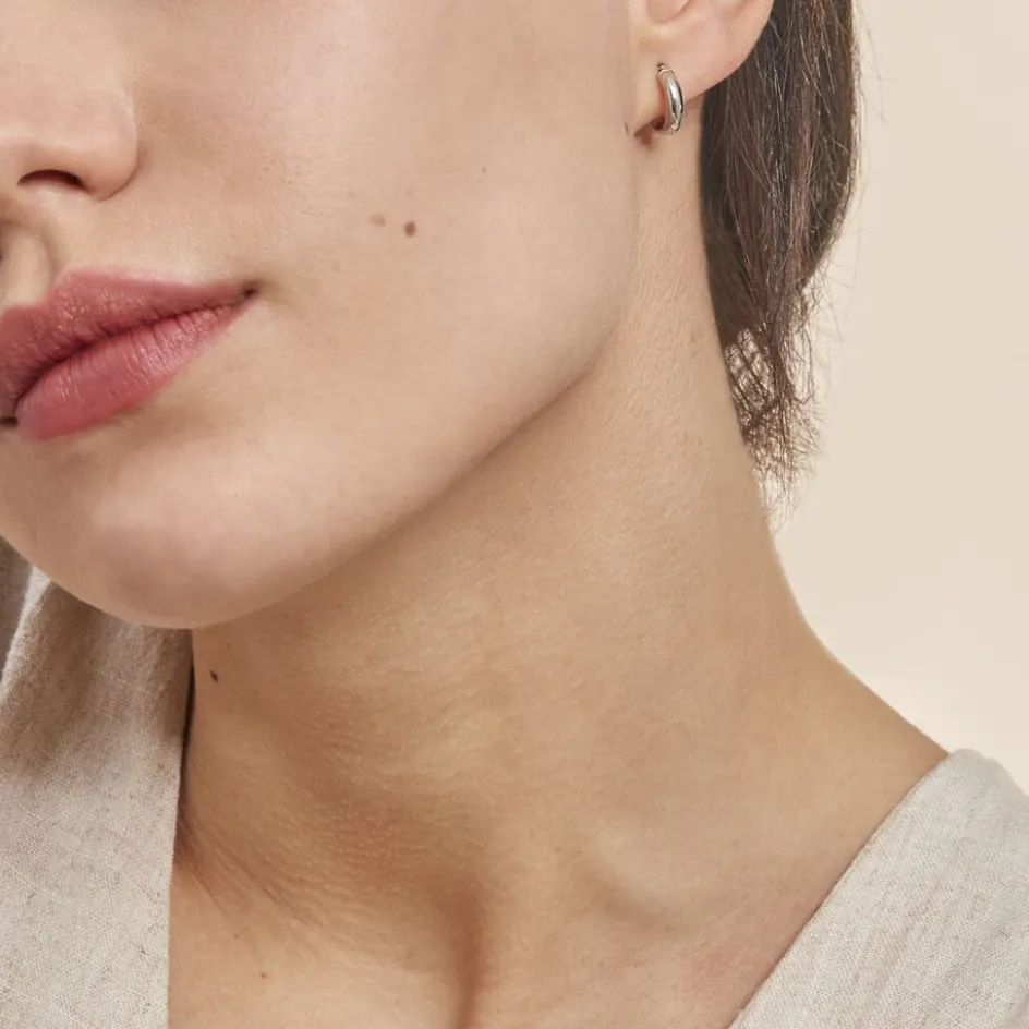 Créoles Or Blanc 375/1000 Fil Demi Jonc Lisse Largeur 3mm Diamètre 8mm