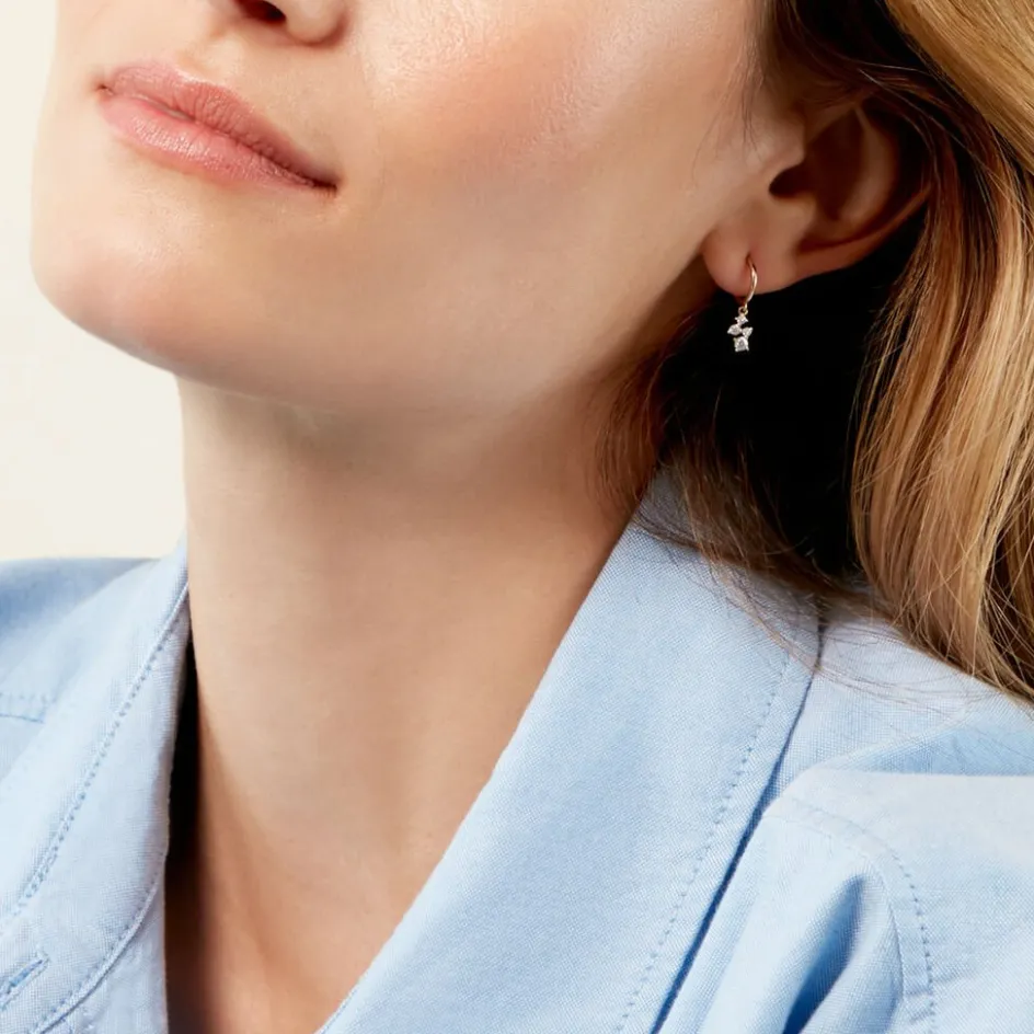 Demi Creoles Or Jaune 375/1000 Pampilles Oxyde De Zirconium Serti Griffes 10Mm