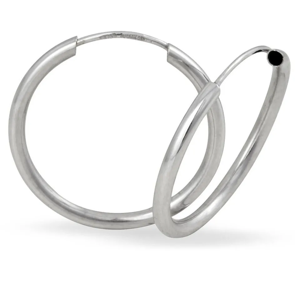 Créoles Or Blanc 375/1000 Fil Flexible Lisse Largeur 1.6mm Diamètre 18mm