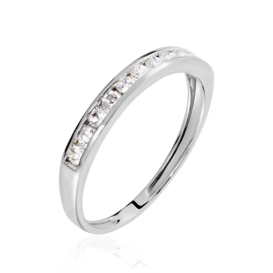 Demi Alliance Or Blanc 375/1000 Oxydes De Zirconium Ronds Serti Rail 2mm