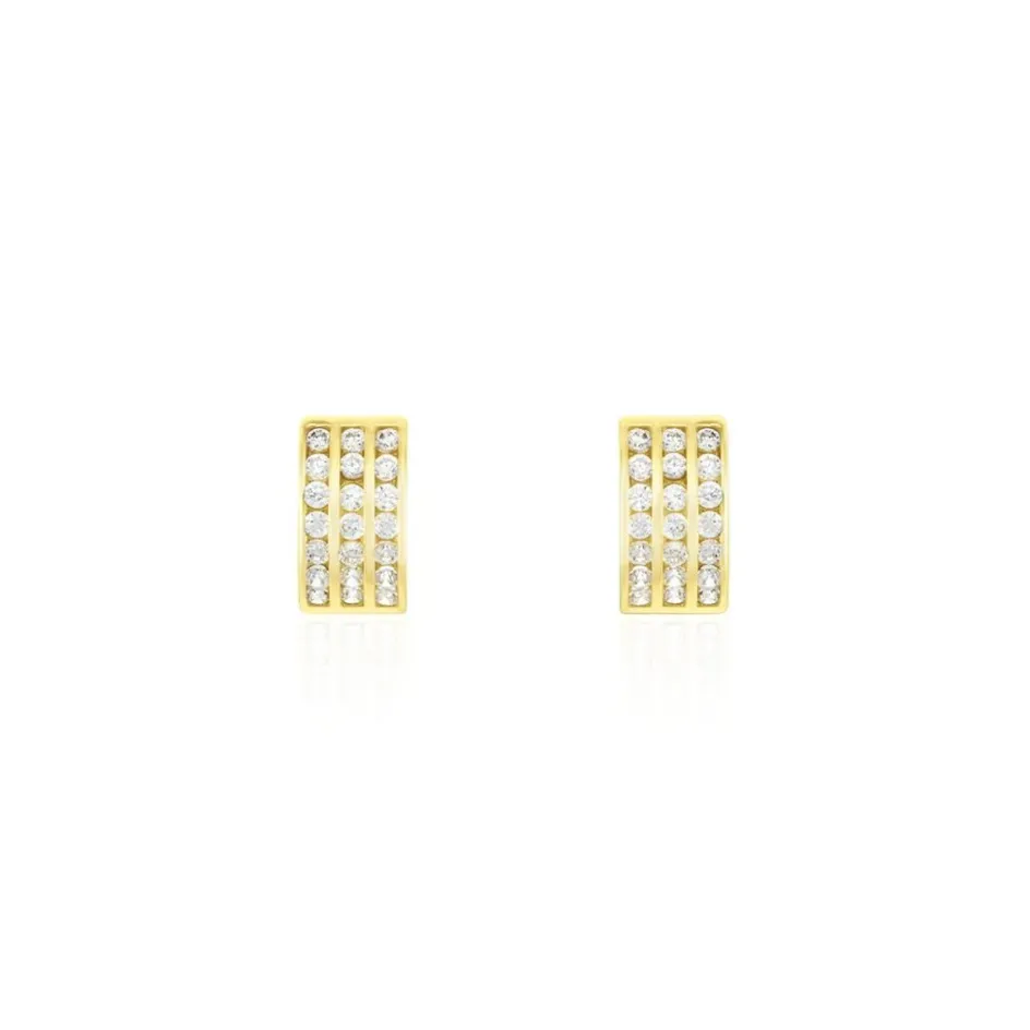 Demi Créoles Or Jaune 375/1000 Oxyde De Zirconium Serti Pavage
