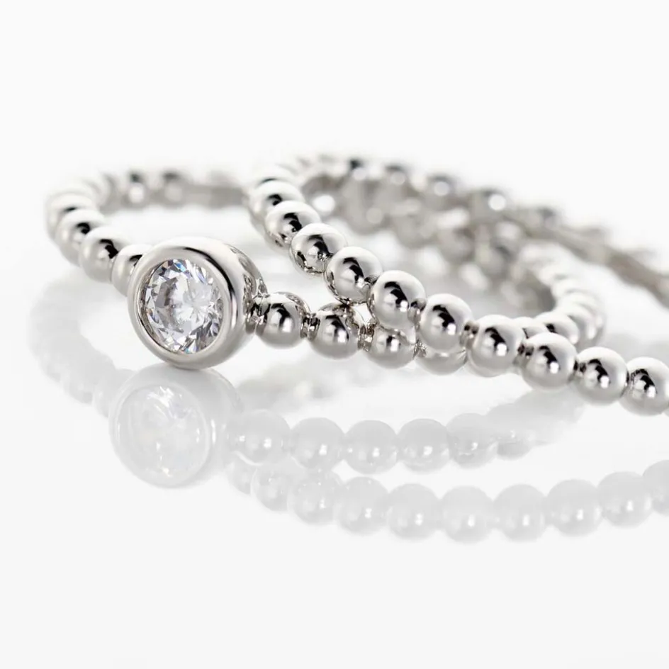 Duo De Bagues Argent 925/1000 Solitaire Et Anneau Micro Setting Oxyde De Zirconium