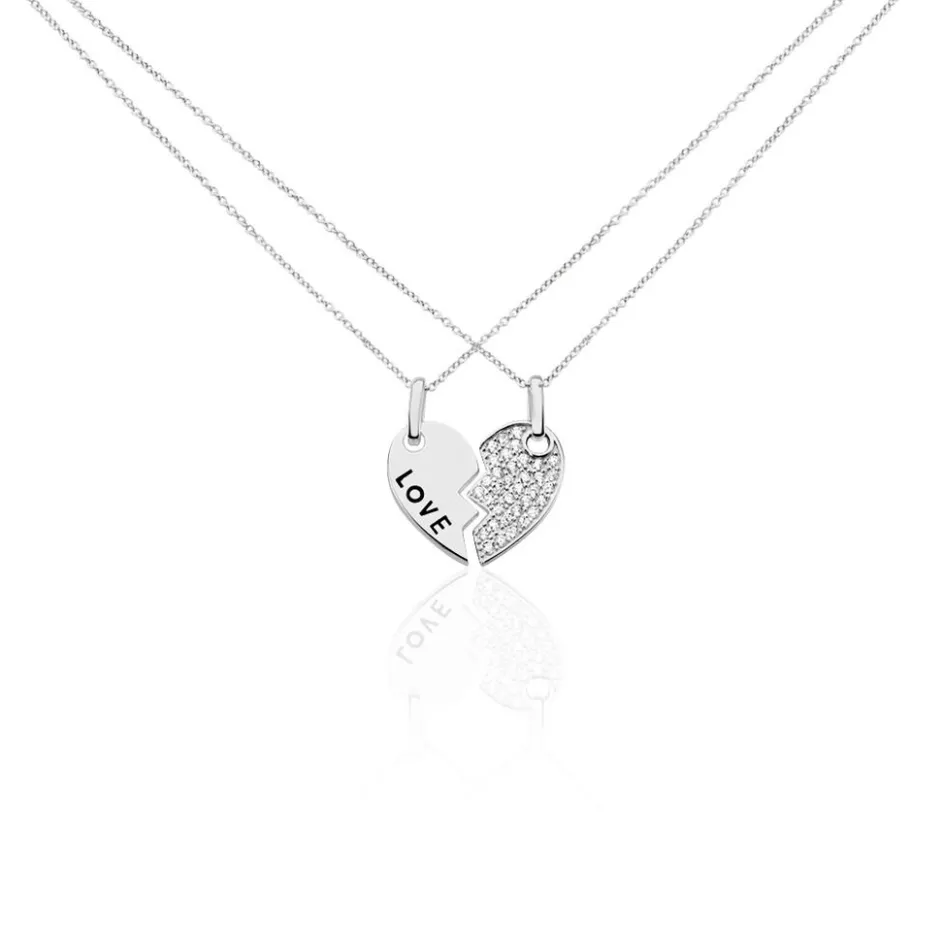 Duo De Colliers Argent 925/1000 C艙ur Separable Love Oxyde 50cm