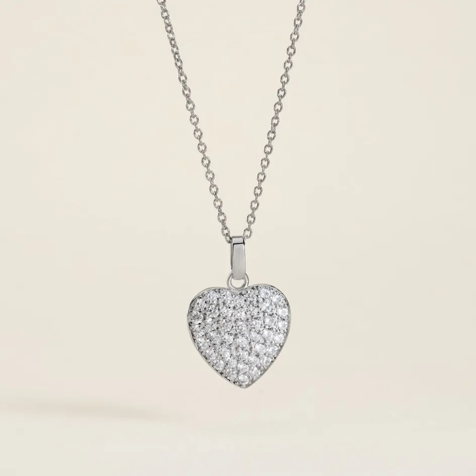 Pendentif Argent Blanc 925/1000 C艙ur Pavage Oxydes De Zirconium