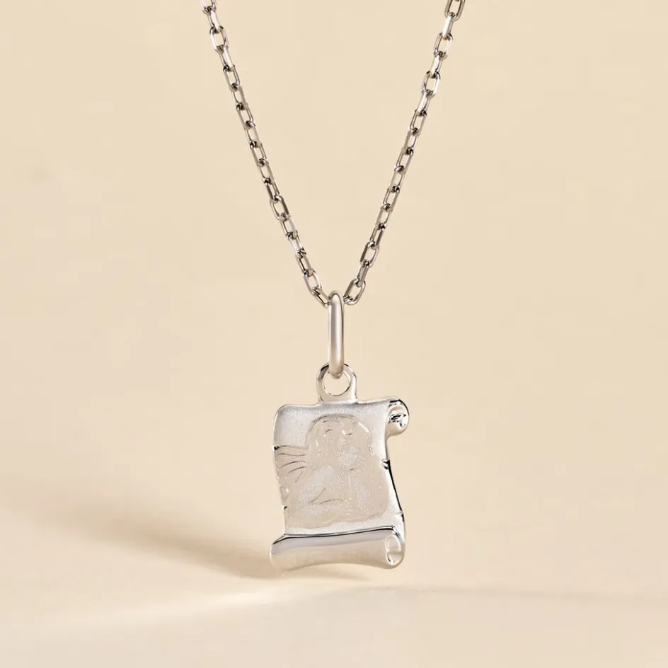 Pendentif Or Blanc 375/1000 Parchemin Lisse Ange