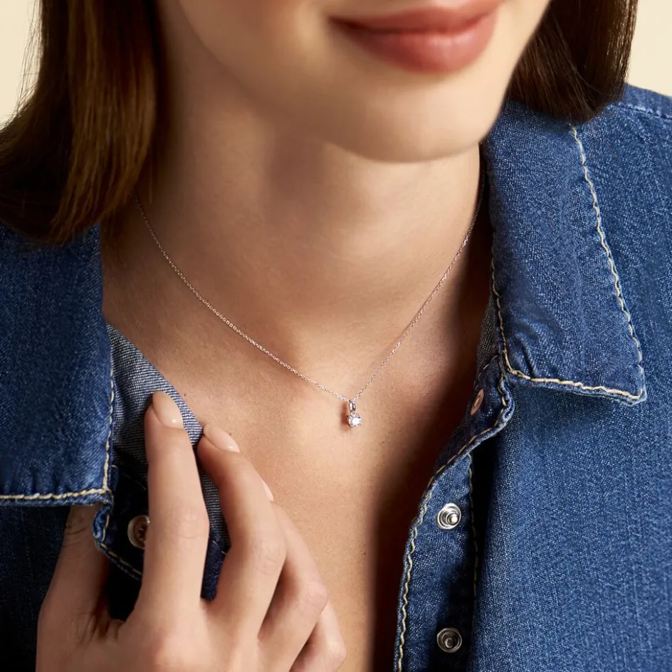 Pendentif Solitaire Or Blanc 375/1000 Diamant 0.35cts Serti 4 Griffes