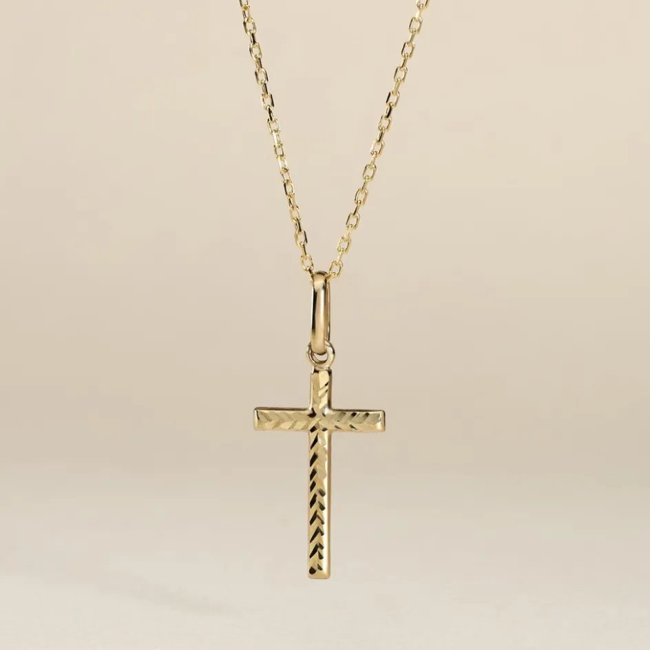 Pendentif Or Jaune 375/1000 Motif Croix Effet Cisele