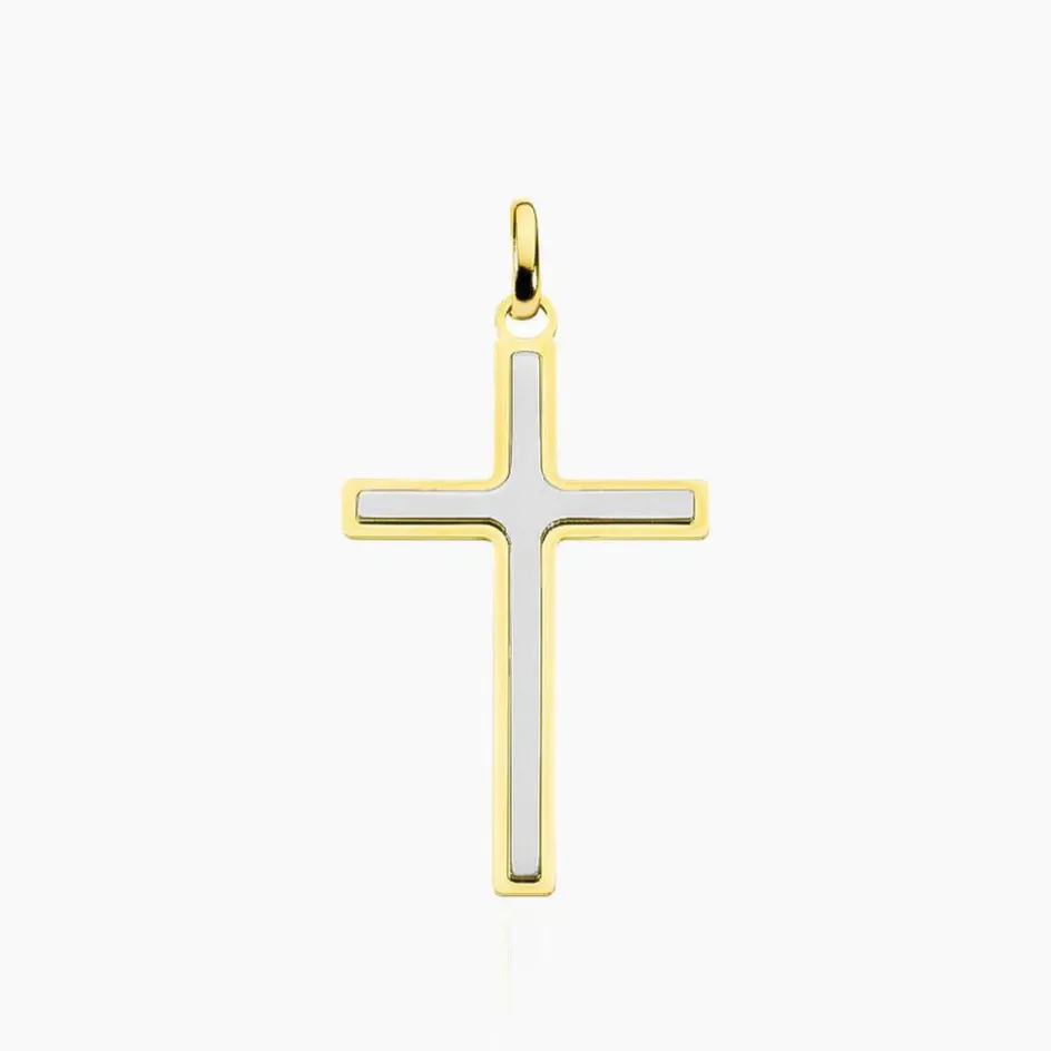 Pendentif Or Bicolore 375/1000 Motif Croix