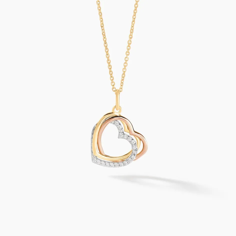 Pendentif Or Tricolore 375/1000 Triple C艙urs Ajourés Entrelacés Oxydes De Zirconium