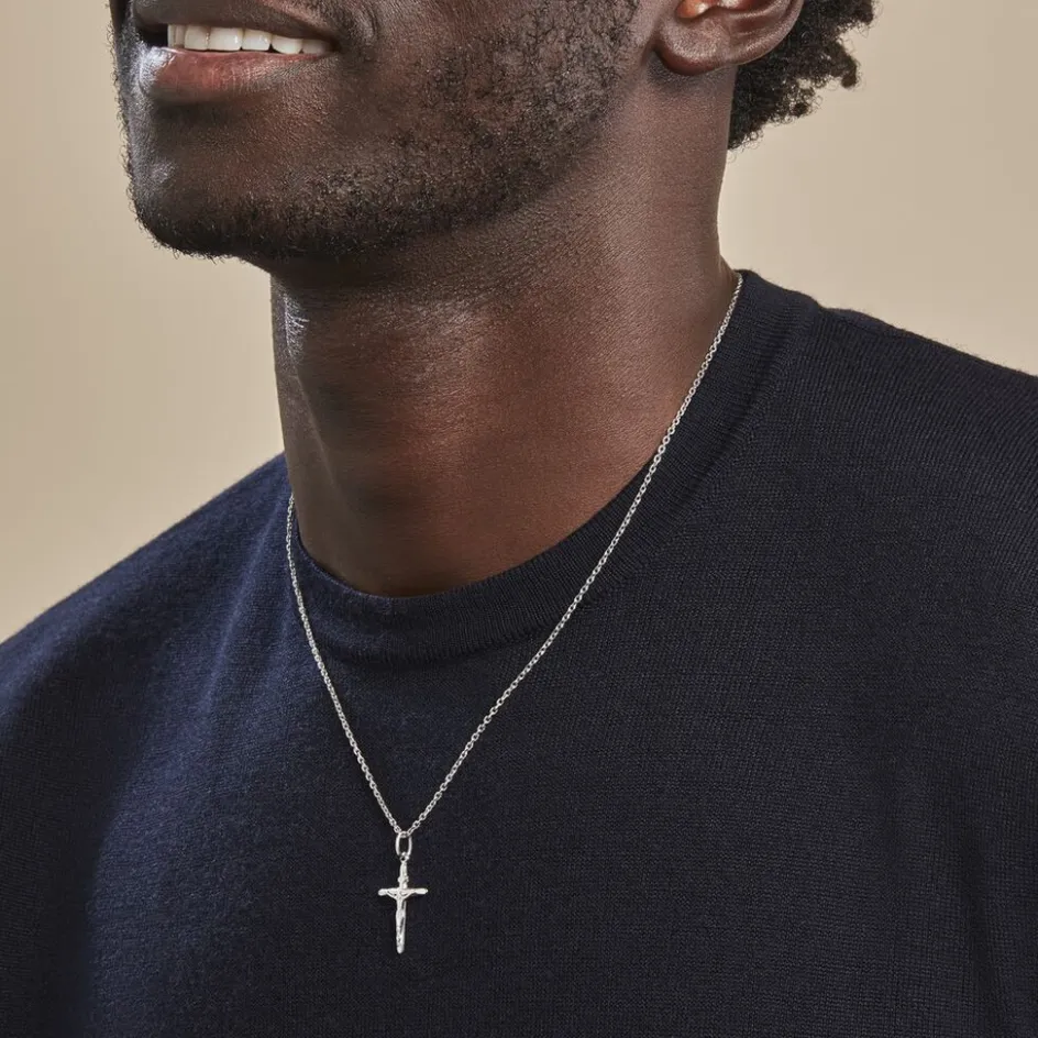 Pendentif Or Blanc 375/1000 Motif Croix Christ