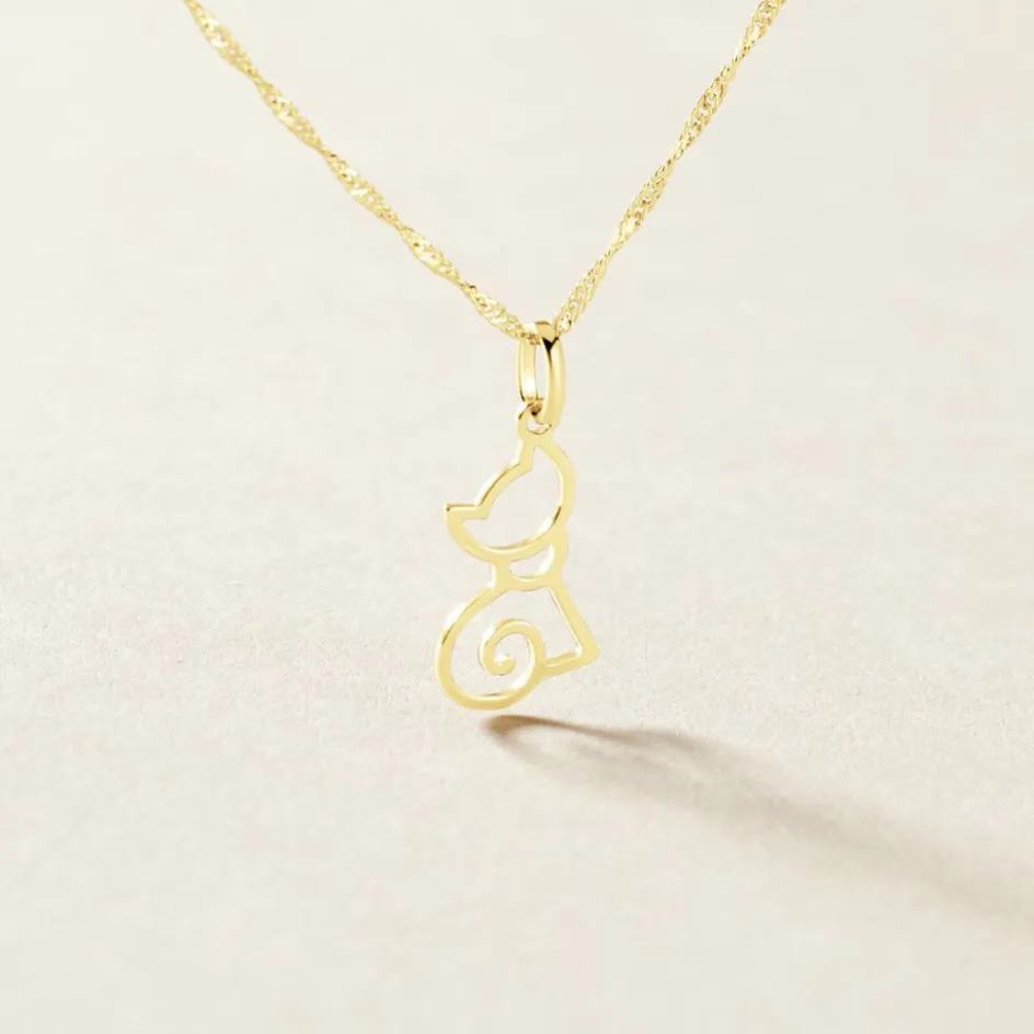 Pendentif Or Jaune 375/1000 Chat Ajoure