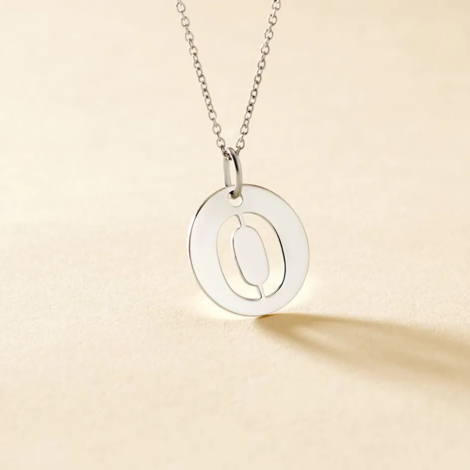 Pendentif Argent Blanc 925/1000 Pastille Lettre O Diametre 18mm