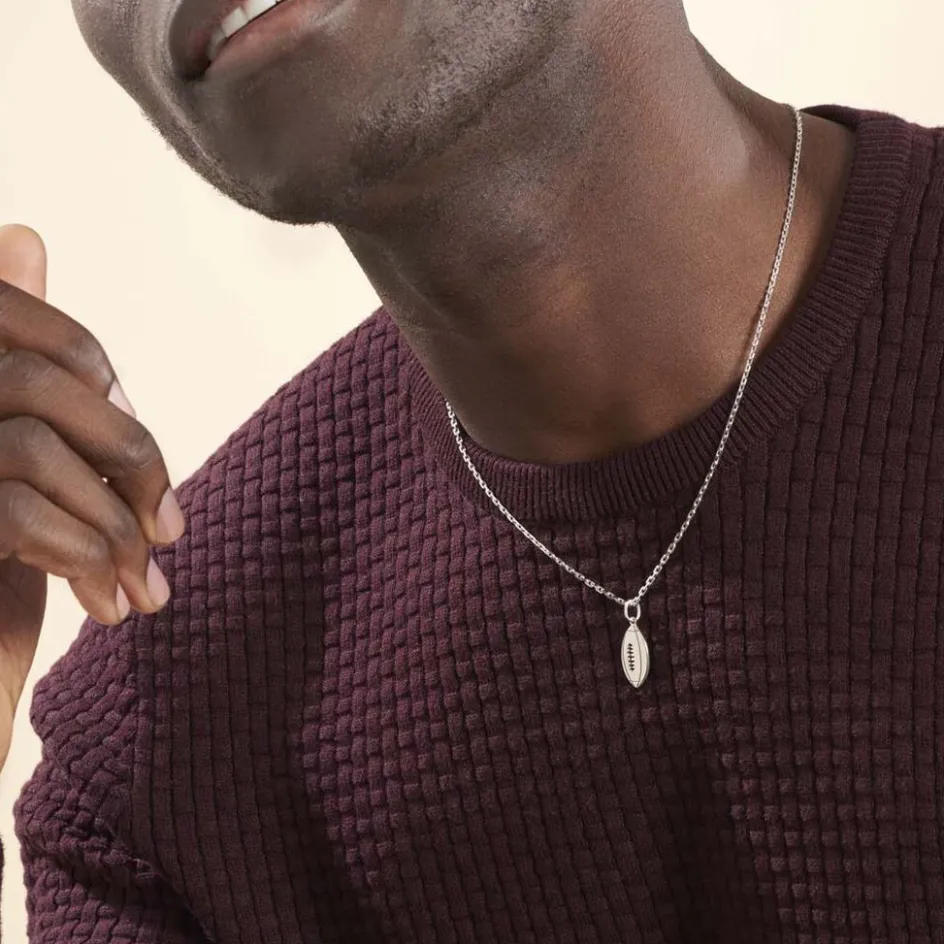 Pendentif Argent Blanc 925/1000 Forme Ballon De Rugby