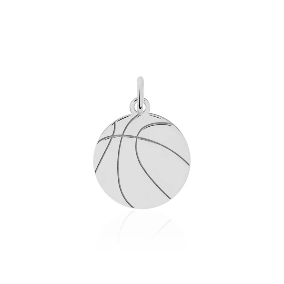Pendentif Argent Blanc 925/1000 Forme Ballon De Basket Diametre 18mm