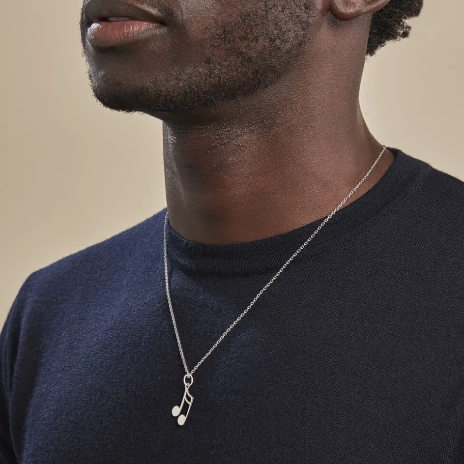 Pendentif Argent Blanc 925/1000 Forme Note De Musique