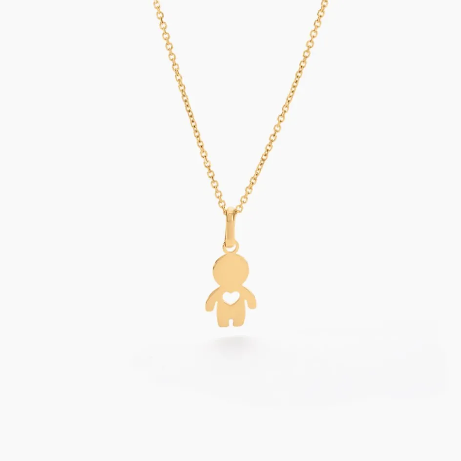 Pendentif Or Jaune 375/1000 Petit Garcon C艙ur Ajoure