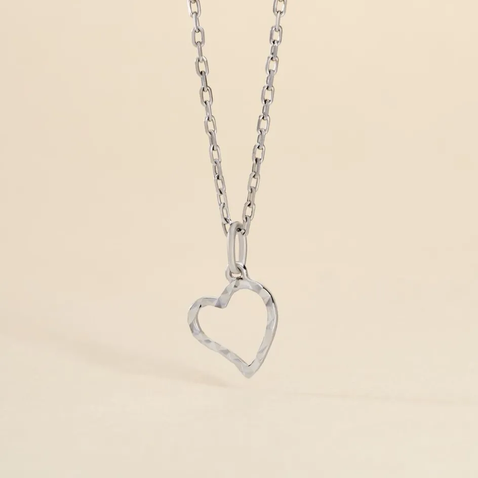 Pendentif Or Blanc 375/1000 Coeur Ajoure