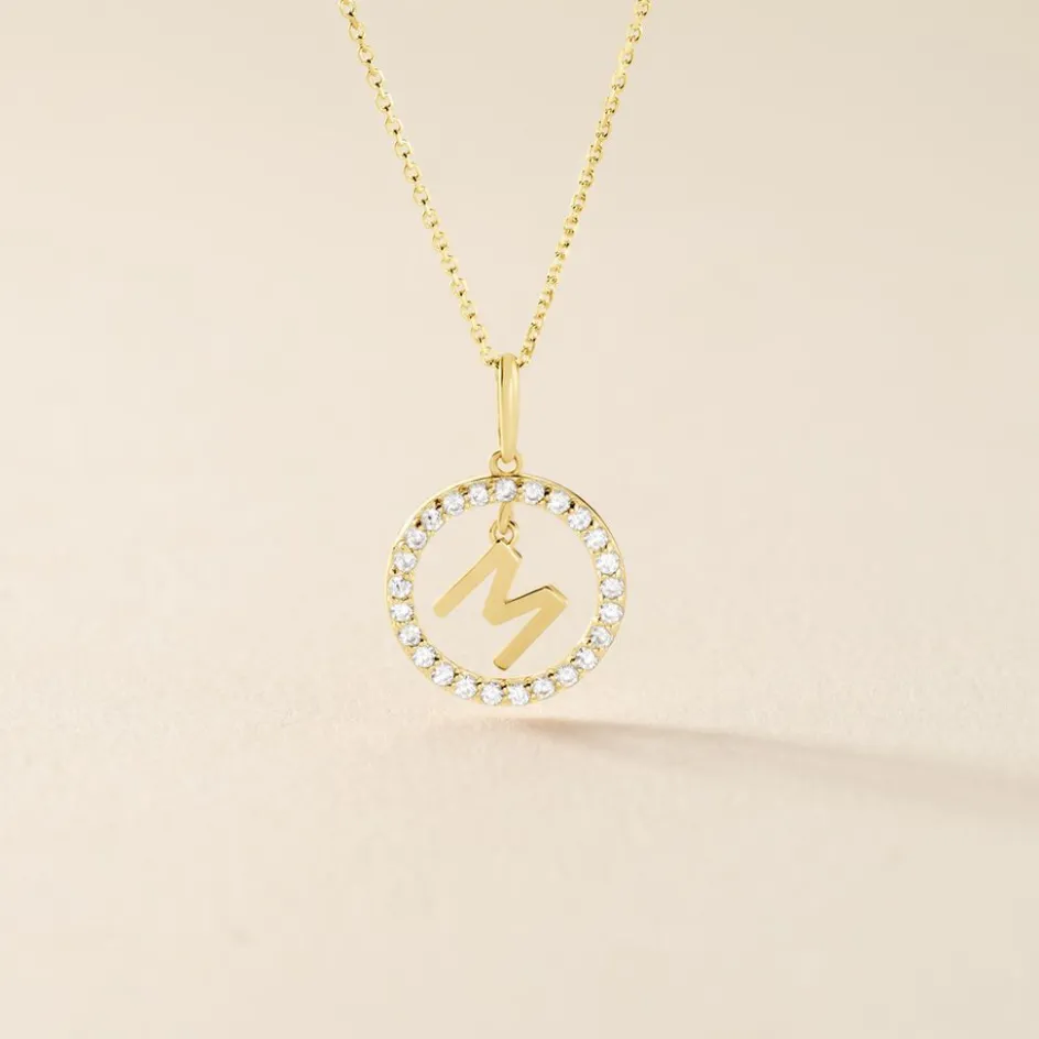 Pendentif Lettre M Or Jaune 375/1000 Entourage Oxyde De Zirconium Blanc