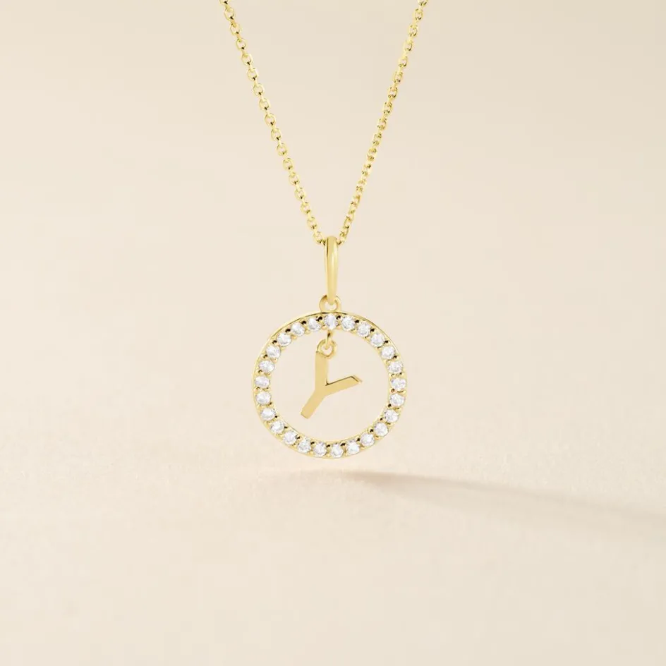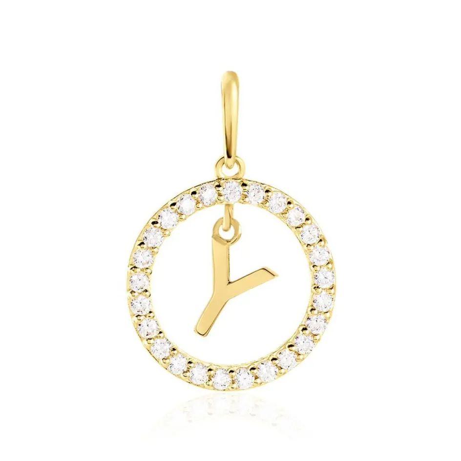 Pendentif Lettre Y Or Jaune 375/1000 Entourage Oxyde De Zirconium Blanc
