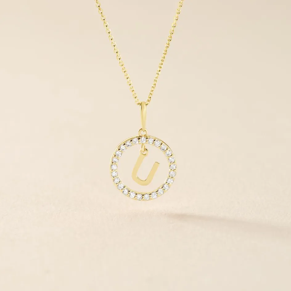 Pendentif Lettre U Or Jaune 375/1000 Entourage Oxyde De Zirconium Blanc