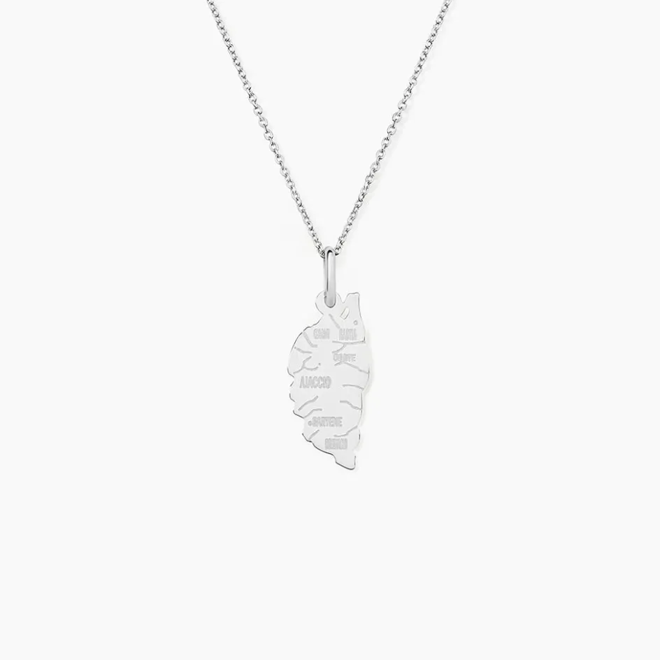 Pendentif Or Blanc 375/1000 Carte Corse Avec Villes 2cm