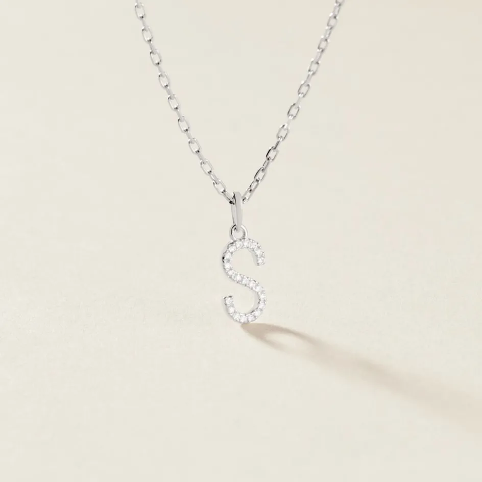 Pendentif Or Blanc 375/1000 Lettre l Oxydes De Zirconium Pavage