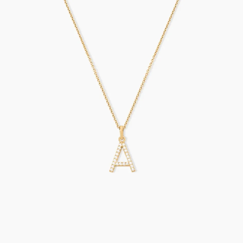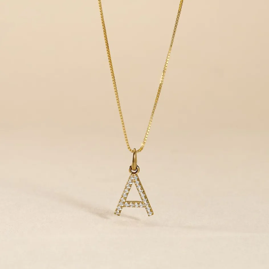 Pendentif Or Jaune 375/1000 Lettre A Oxydes De Zirconium Serti Griffes