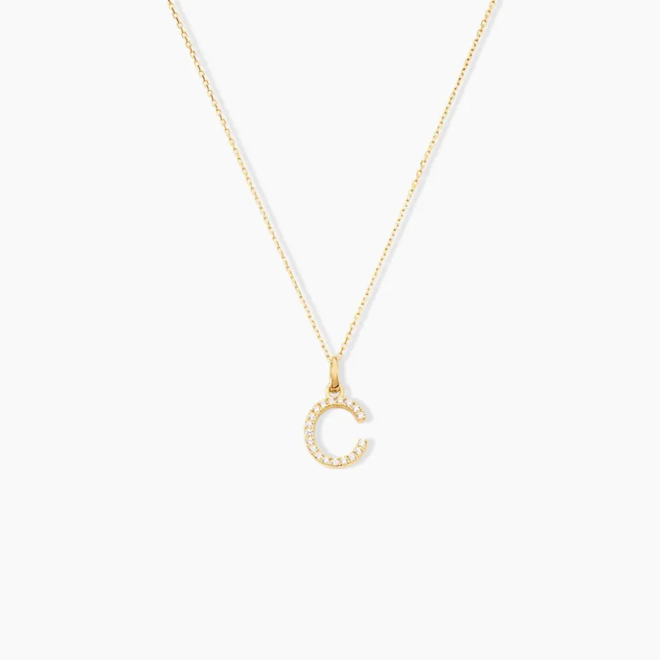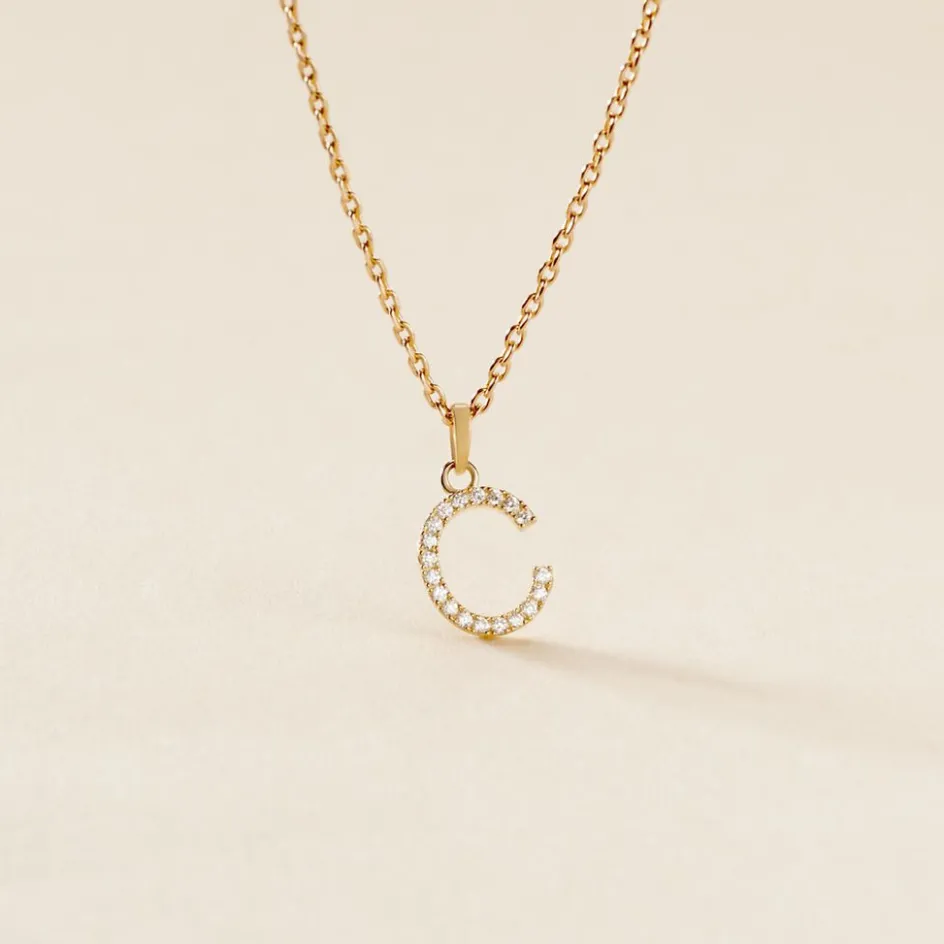 Pendentif Or Jaune 375/1000 Lettre C O Oxydes De Zirconium Serti Griffes