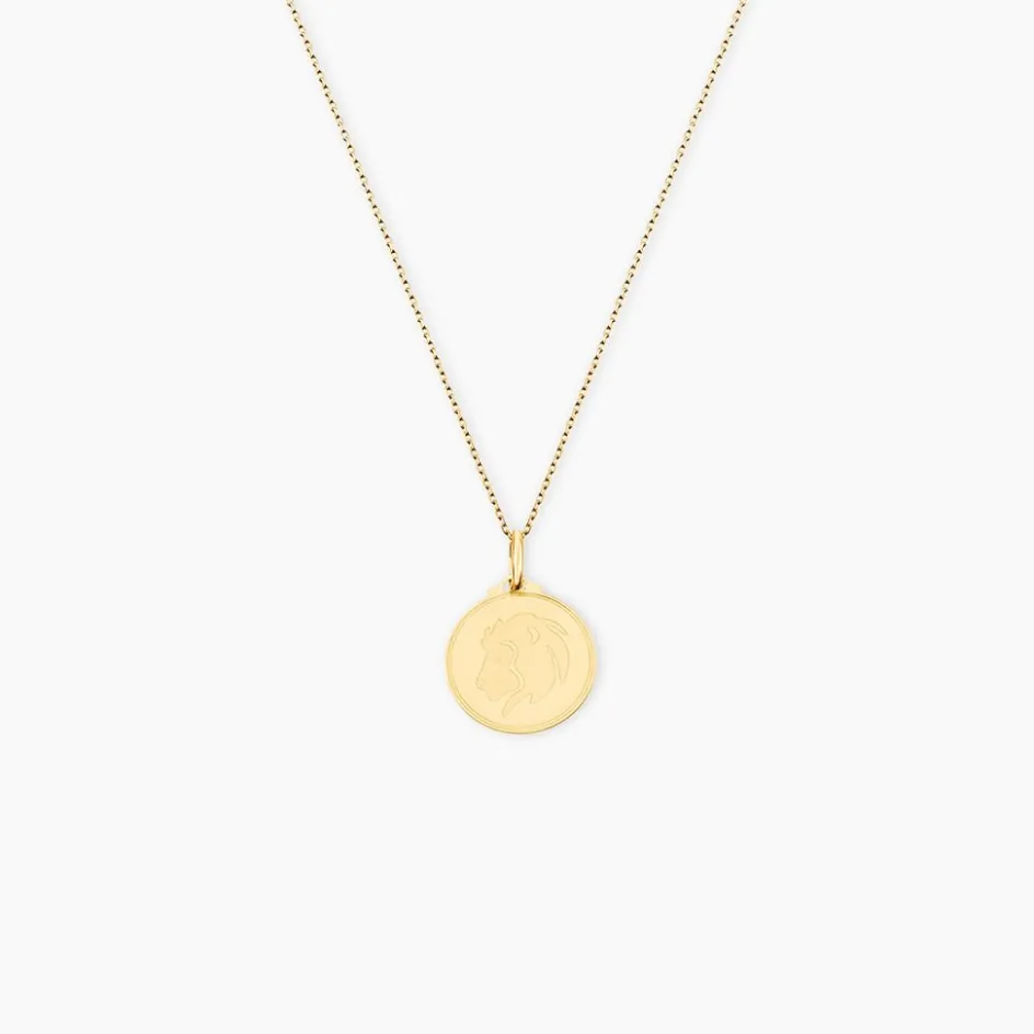 Pendentif Or Jaune 975/1000 Medaille Ronde Motif Lion