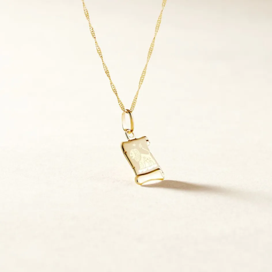 Pendentif Parchemin Or Jaune Signe Zodiaque Lion