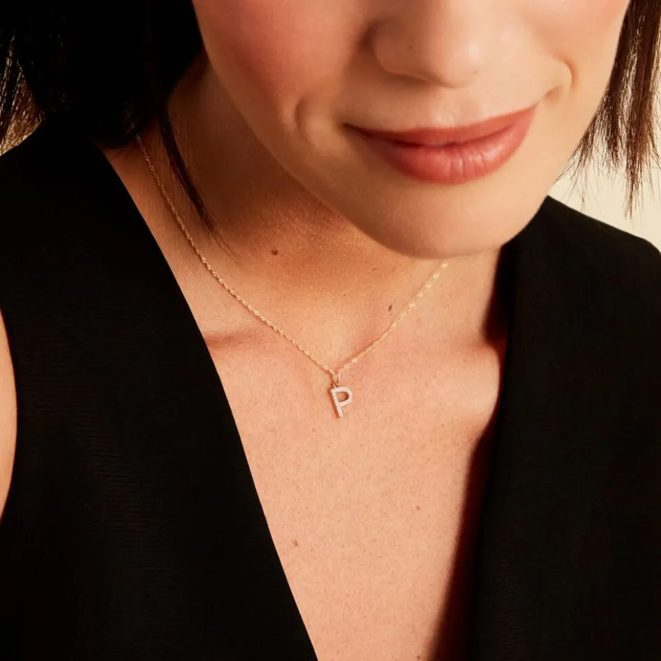 Pendentif Or Jaune 375/1000 Lettre P Oxydes De Zirconium