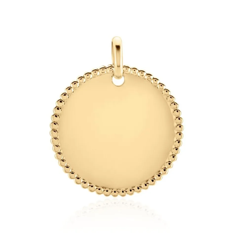 Pendentif Plaque Or Médaille Ronde Effet Perlé Diamètre 18mm