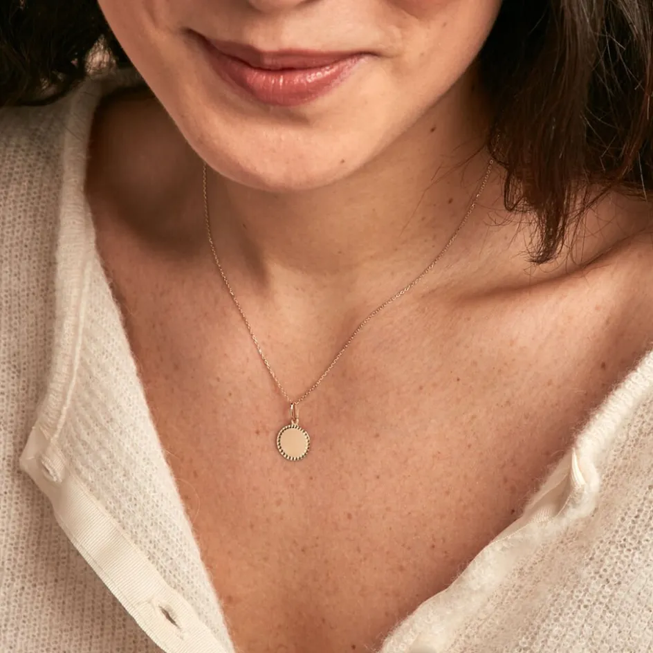 Pendentif Or Jaune 375/1000 Pastille Lisse Diametre 12mm