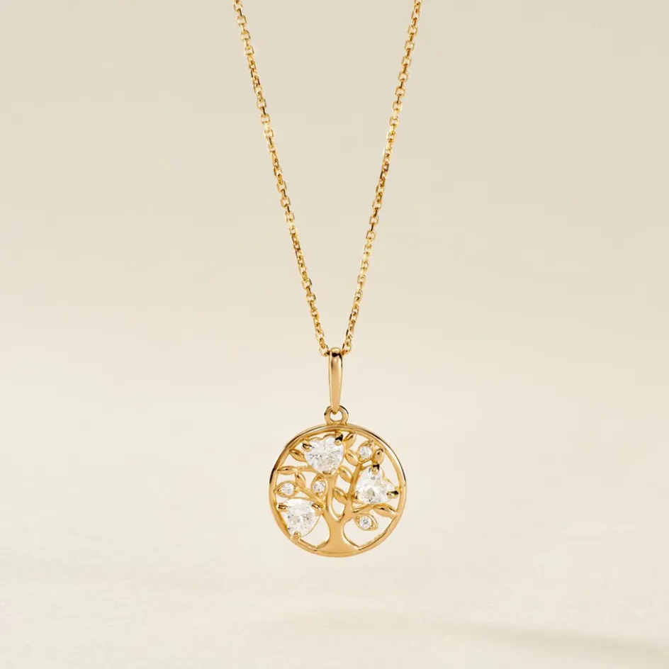 Pendentif Or Jaune 375/1000 Arbre De Vie Avec 3 C艙urs Oxydes De Zirconium