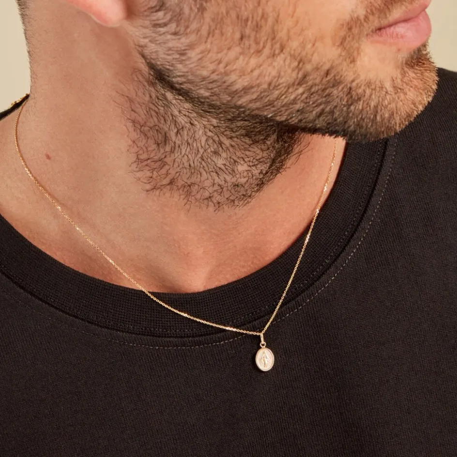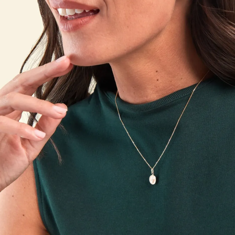 Pendentif Or Jaune 375/1000 Vierge Miraculeuse Ovale Email Beige 1.2cm