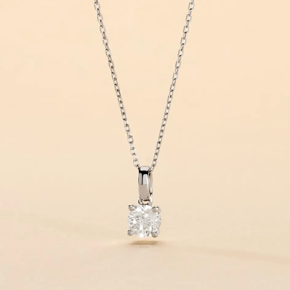 Pendentif Solitaire Or Blanc 750/1000 Diamant 0.40cts Serti 4 Griffes