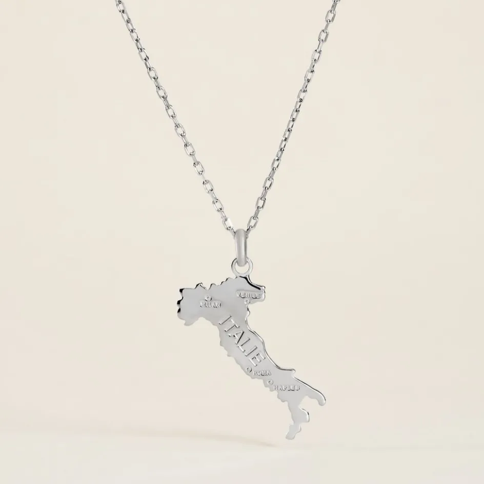 Pendentif Argent Blanc 925/1000 Carte De L’italie