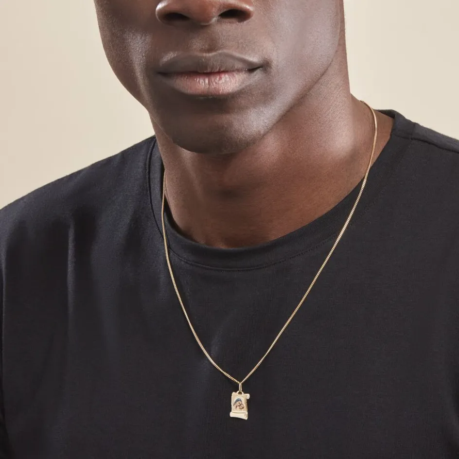 Pendentif Or Jaune 375/1000 Parchemin Vierge A L’enfant Resine De Couleur