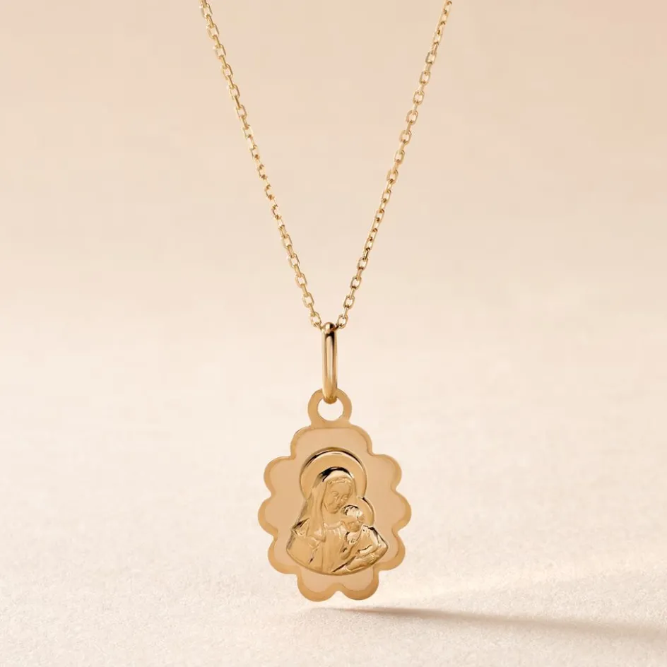 Pendentif Or Jaune 375/1000 Forme Nuage Motif Vierge
