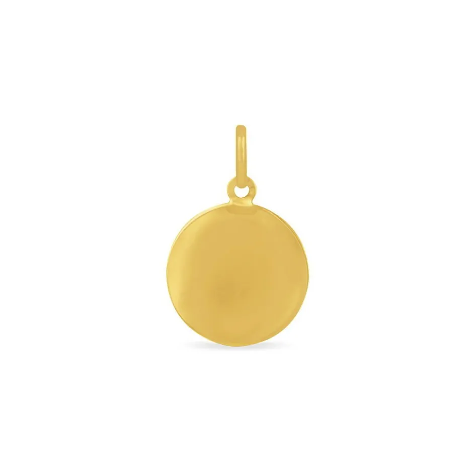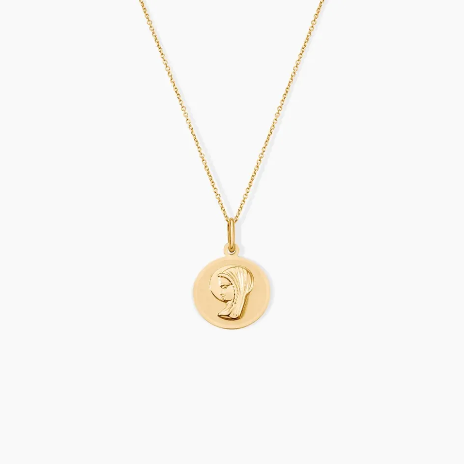 Pendentif Or Jaune 375/1000 Médaille Ronde Mat Motif Vierge