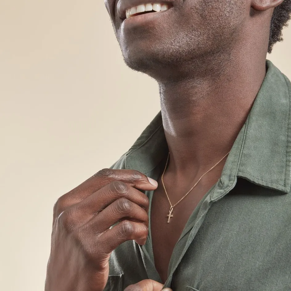 Pendentif Or Jaune 375/1000 Motif Croix Striée
