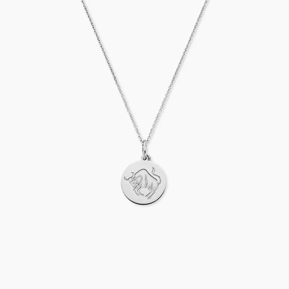 Pendentif Argent Blanc 925/1000 Medaille Ronde Motif Taureau