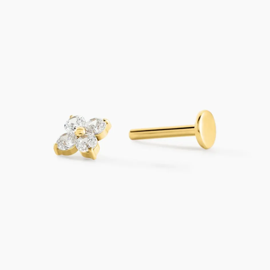 Piercing Titane Doré Oxydes De Zirconium Motif Fleur