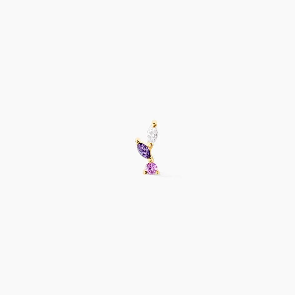 Piercing D’Oreilles Or Jaune 375/1000 Amande Oxyde De Zirconium Violet 0,05 Cts Serti 2 Griffes