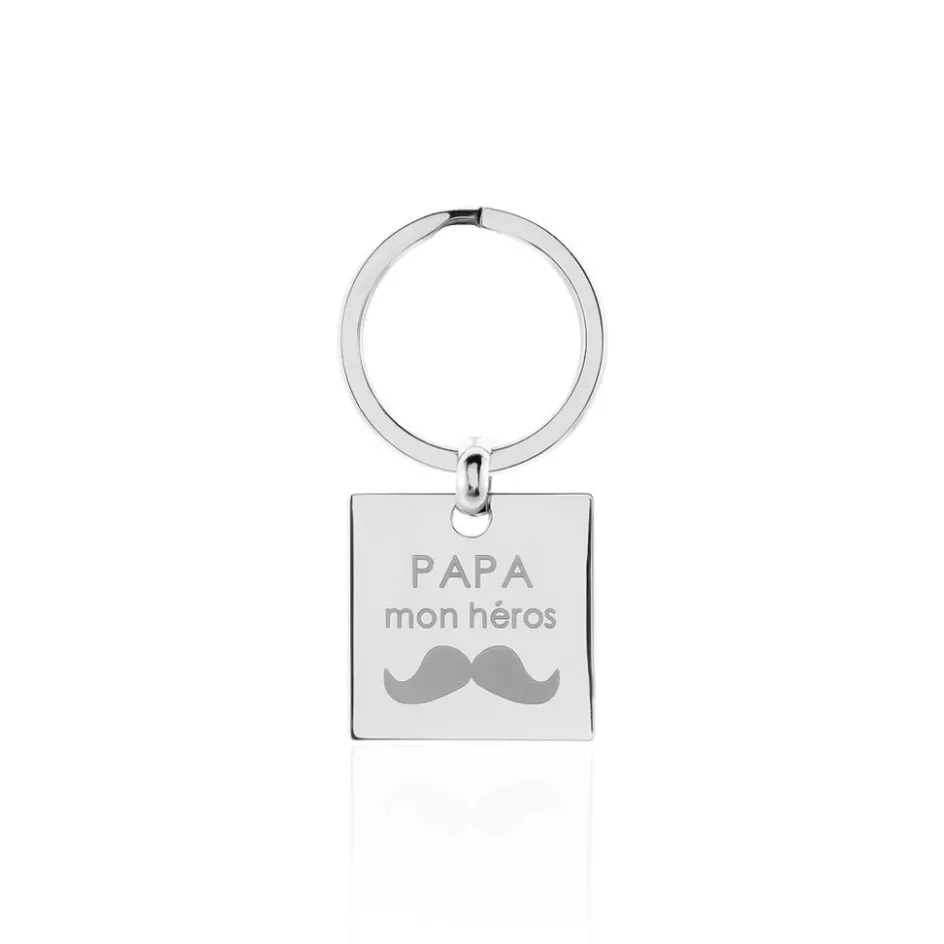 Porte Clef Acier Inoxydable Blanc Forme Carree Message Papa Mon Heros