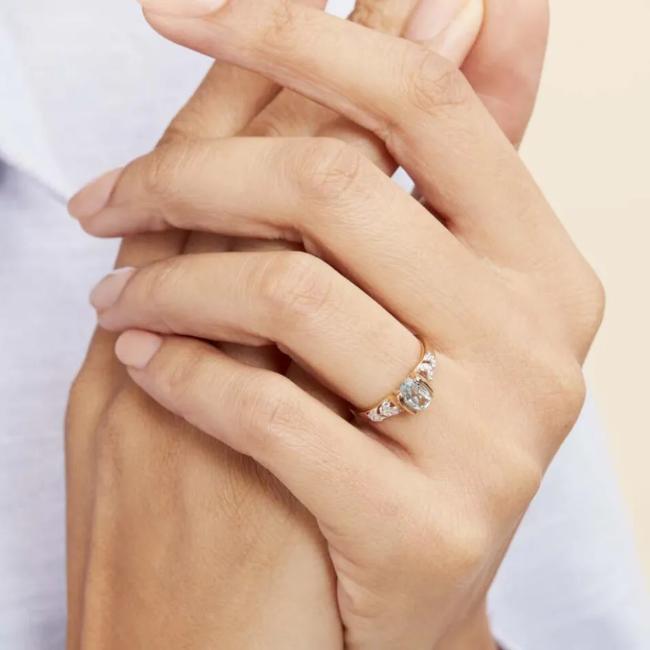Solitaire Or Jaune 375/1000 Topaze Bleu Griffes Oxydes